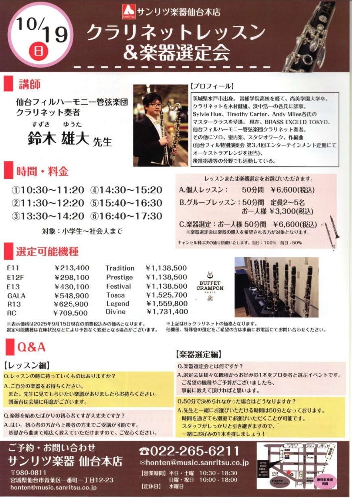 時間: | 【レッスン・楽器選定会 概要】をご覧ください |
